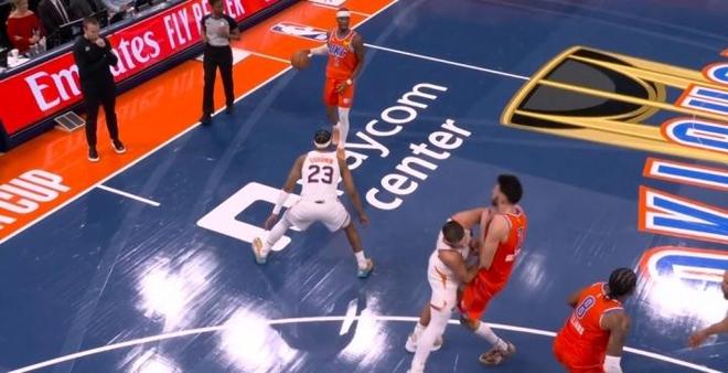 当时这个动作到底有多狠?格雷森阿伦先给了切特脖子一肘子,又推了他一把,连旁边的亚历山大都看呆了,这是真的打不过球只能打人。太阳也是有点急,被对方这么羞辱,球员们干脆选择用这种斗殴打架的方式,自己申请退场。毕竟三节之后,自己的球队110:72落后了38分,此时继续留着,只能说是让自己难堪。