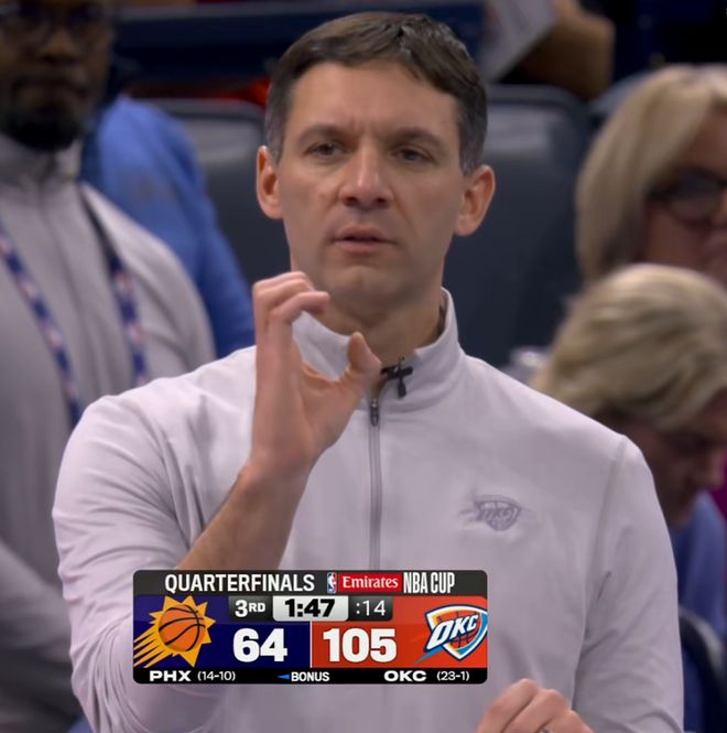 新赛季开始以来,雷霆已经取得了23胜1负的成绩,现在他们面对上了西部第七的太阳,还是在NBA杯,本来面对强敌,这场比赛应该很精彩,但是并非如此。光是上半场比赛,雷霆就已经打出了74:48的比分,半场狂轰26分领先真无敌了。而且他们三分命中率是惊人的19中13,哪怕在训练当中都很难投出这样的命中率,但是雷霆在比赛里投出了这种效率。